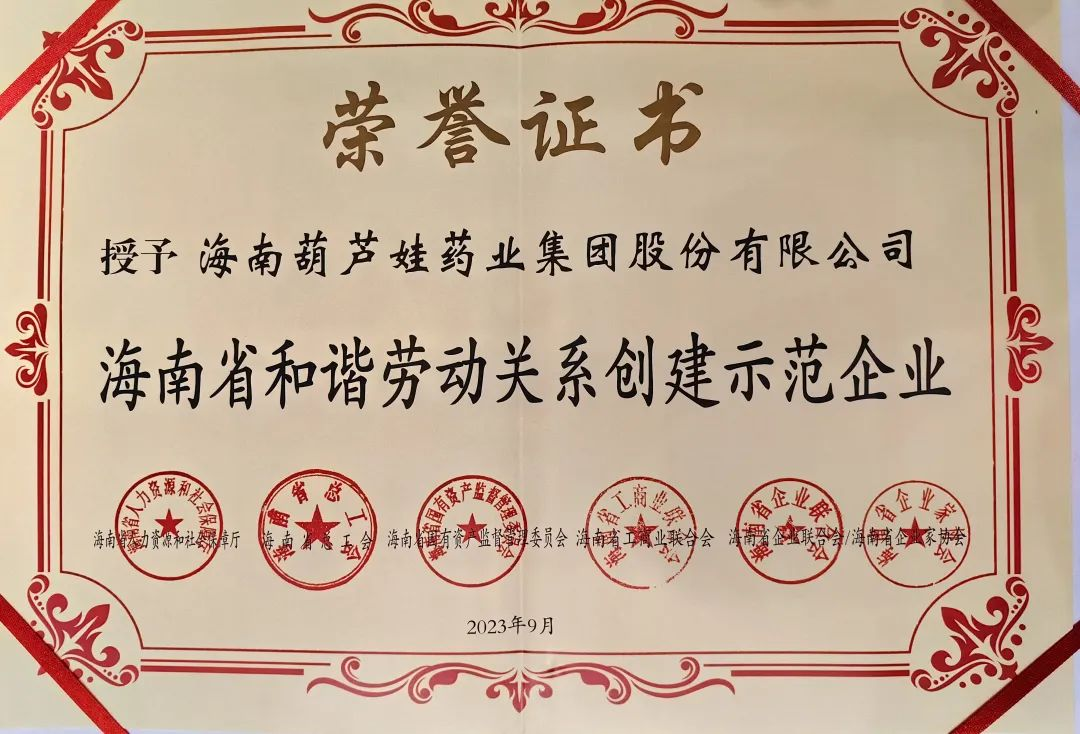 z6尊龙药业集团获评“海南省和谐劳动关系创建示范企业”